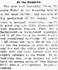 The four reel photoplay „Over Niagara Falls“ at the Swastika