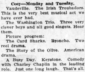 & Cosy Theater – Pendleton, Ore. C. P. Bruce, Manager.