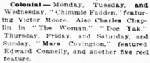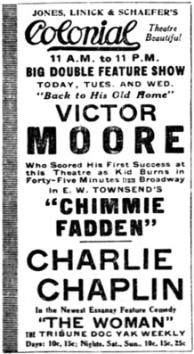 Victor Moore. Also Charles Chaplin in The Woman.“ (...)