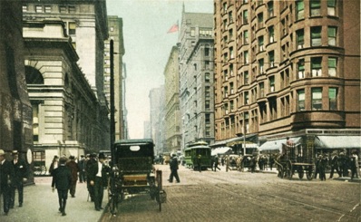 & Dearborn Street, Chicago, Ill., undated, postcard in color