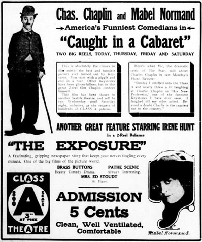 Advertisement. „Chas. Chaplin and Mabel Normand,