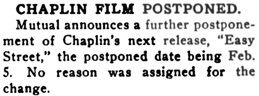 of Chaplin‘s next release, Easy Street, the postponed date being