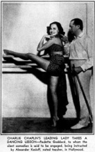 & Charlie Chaplin‘s Leading Lady takes a Dancing Lesson – Paulette Goddard, to whom the silent comedian