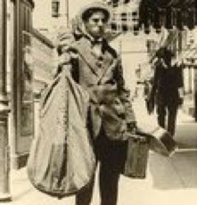 Charles Chaplin with violin and cello, touring the U. S. with Fred Karno‘s company, 1910s, Cineteca Bologna