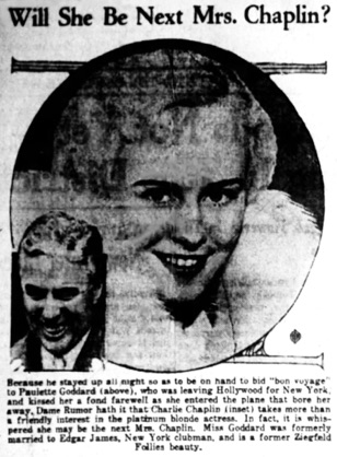 of Charlie Chaplin. Miss Goddard‘s previous career as an