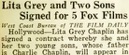 Chaplin recently, Mrs. Lita Grey Chaplin will make