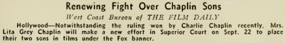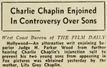 Editorial content. „Renewing Fight Over Chaplin Sons
