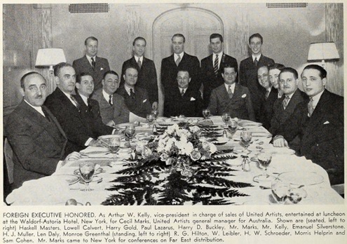 Hotel, New York, for Cecil Marks, United Artists general manager