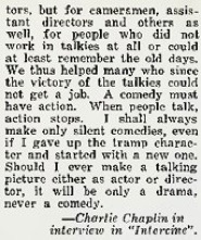 – Charlie Chaplin in interview in ,Intercine‘.“