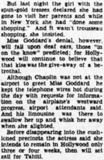Although Chaplin was not at the airport to greet Miss Goddard