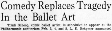 Trudi Schoop, comic ballet artist, is scheduled