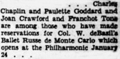 „Made reservations for Col. W. deBasil‘s Ballet Russe“