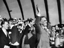 & Gov. Franklin D. Roosevelt of New York waves to crowd