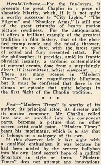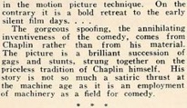 is almost unnoticed whenever the picture resolves itself into the characteristic Chaplin slapstick and mimicry.“ (...)