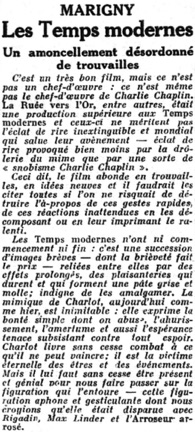 (...) Charlie Chaplin dans „Les Temps modernes“