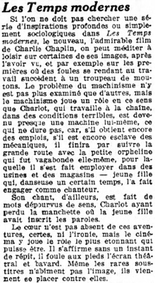 Les Temps Modernes – is March 13, 1936 at the