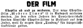 & Chaplin ab und zu verboten. Der neue Chaplin-Film „Modern