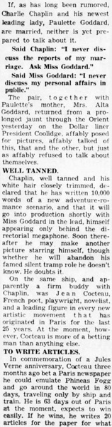 newest leading lady, Paulette Goddard, are married, neither is yet prepared to talk about it.