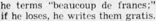 what he terms ,beaucoup de francs;‘ if he loses, he writes