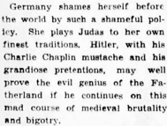finest traditions. Hitler, with his Charlie Chaplin mustache