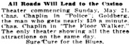 Theater commencing Sunday, 21. Chas. Chaplin in „Police“;