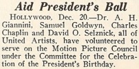 HOLLYWOOD, Dec. 20. – Dr. A. H. Giannini, Samuel