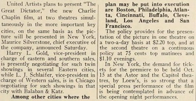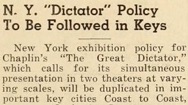 New York exhibition policy for Chaplin‘s „The Great Dictator,“