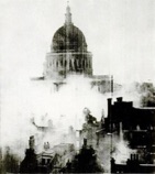 A LONDON building, its own bomb scars covered