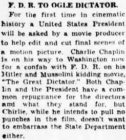 F.D. R. on his Hitler and Mussolini kidding movie, The
