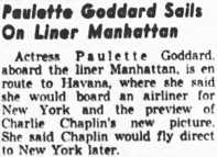 Actress Paulette Goddard, aboard the liner Manhattan,