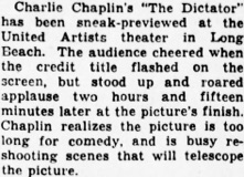 „Charlie Chaplin‘s The Dictator has been sneak-previewed