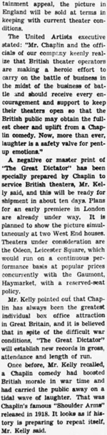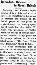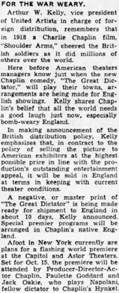 release of Chaplin‘s latest comedy, „The Great Dictator,“