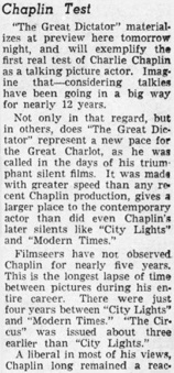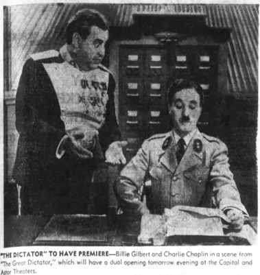 The Great Dictator world premiere is in New York Oct. 15, 1940