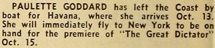 The Great Dictator world premiere is in New York Oct. 15, 1940