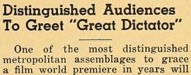 & Distinguished Audiences To Greet „Great Dictator“ (...)