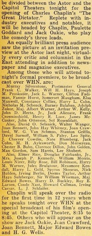 The Great Dictator world premiere is in New York Oct. 15, 1940