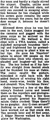 Saturday noon and hardly a ripple stirred the airport. Chaplin,