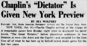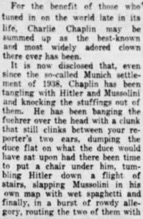 Editorial content. „Chaplin‘s ,Dictator‘ Is Given