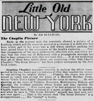 Ed Sullivan, Daily News, New York, October 17, 1940.