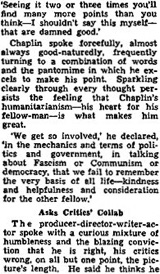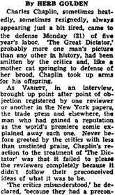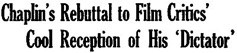 Editorial content. „Chaplin‘s Rebuttal to Film Critics‘