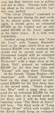 at Broadway first runs, with the exception of The Great Dictator,