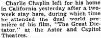 of his film, The Great Dictator, at the Astor and Capitol