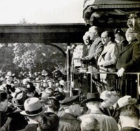 & He makes first rear-platform talk, at Wilmington, Del.
