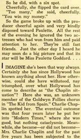 hunching in something else. And Miss Paulette Goddard was scrambling into the outfit and racing off to the office