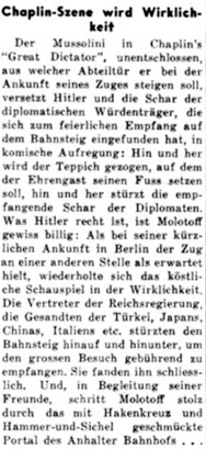 Editorial content. „Chaplin-Szene wird Wirklichkeit
