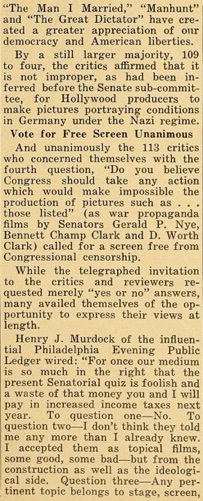Editorial content. „CRITICS NIX SENATE CHARGES