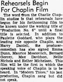 & Rehearsals Begin For Chaplin Film