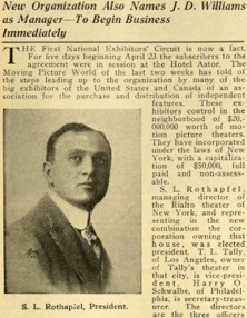 of S. L. Rothapfel as head of the First National Exhibitors‘
