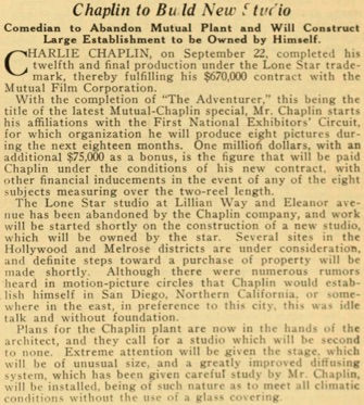 Chaplin to Build New Studio