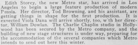 „Edith Storey, the new Metro star, has arrived in Los Angeles.